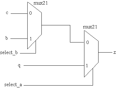 PORT (a, select_a, b, select_b, c : IN std_logic; z : OUT std_logic);