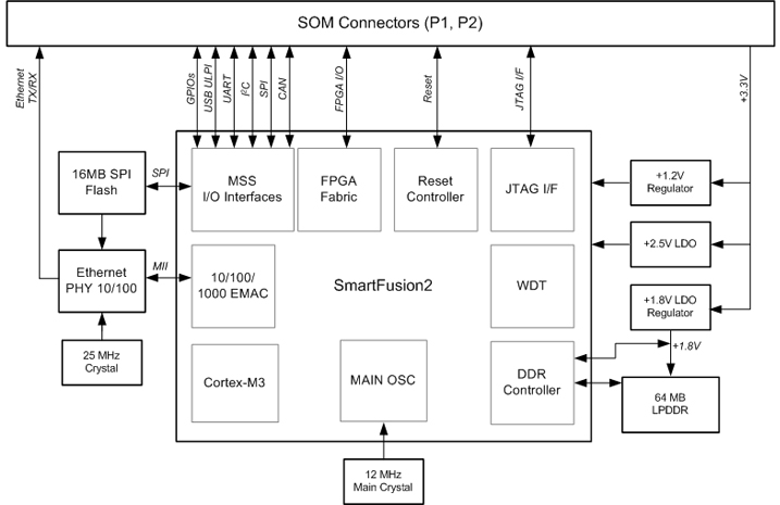 SmartFusion2 System-On-Module (SOM) Block Diagram