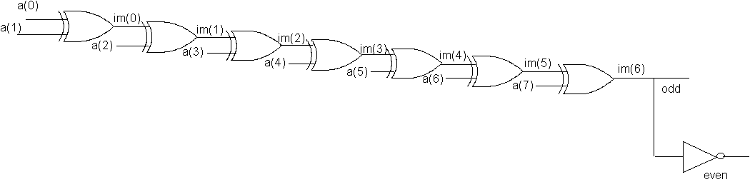 PORT (a : IN BIT_VECTOR (7 DOWNTO 0); odd, even : OUT BIT);