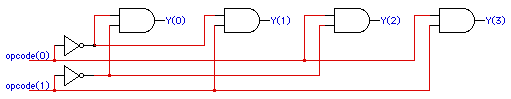 Vb. SIGNAL Y : std_logic_vector (0 to 3); SIGNAL opcode : std_logic_vector (0 to 1); WITH opcode SELECT Y <= "0001" WHEN "11", "0010" WHEN "10", "0100" WHEN "01", "1000" WHEN "00";