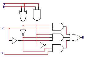 c. IF a OR b THEN Z <= X; ELSIF a AND b THEN Z <= not X; ELSE Z <= Y; END IF;
