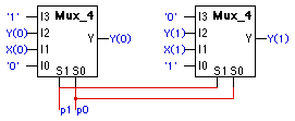 c. SIGNAL p : integer range 0 to 3; SIGNAL Y : std_logic_vector(0 to 1); CASE p IS when 0 => Y <= "10" after Tprop; when 1 => Y <= X after Tprop; when 2 => Y <= Y after Tprop; when 3 => Y <= "01" after Tprop; END CASE;