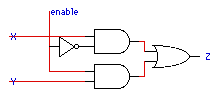 b. IF enable = '1' THEN Z <= X; ELSE Z <= Y; END IF;