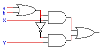 c. IF a OR b THEN Z <= X; ELSIF a AND b THEN Z <= not X; ELSE Z <= Y; END IF;