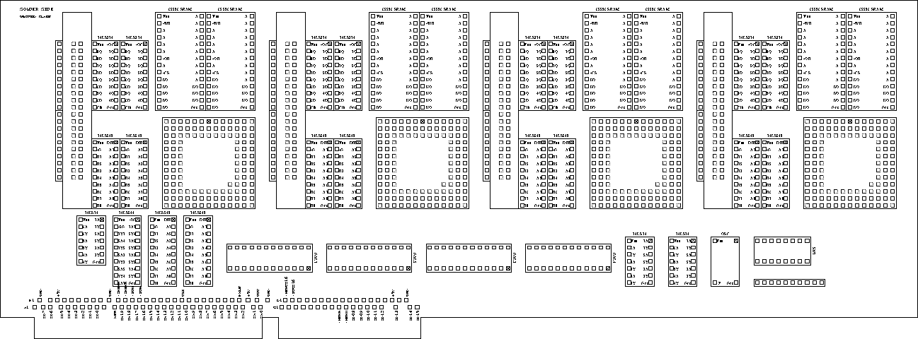 The layout of the Bullwinkle board is shown in Figure 5.2. Only the second buffer module (module 1) was actually wired, since modules 0, 2, and 3 are identical. The four GALs, oscillator, inverters, and system bus buffers are on the lower half of the board.