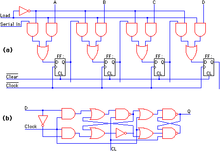 In addition to logic gates, there must be some accommodation for storage of data. Figure 1.11(b) shows the design of a flip-flop using AND, OR, NOT, and NAND gates. This circuit can be built electronically so that it correctly stores a single bit of data. With the addition of such a memory facility, any functional design can be done.