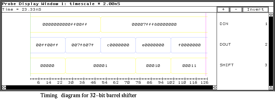A N-bit barrel shifter can shift left or right by N-1 bits. In general, barrel shifter can implement arithematic shifting, logical shifting and rotation functions. The input signals for a N-bit barrel shifter are given as following: