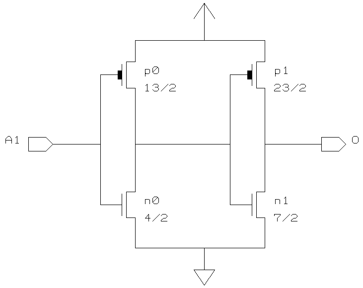 Schematic of the standard cell "buff101" with device sizes in lambda.
