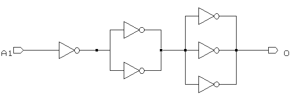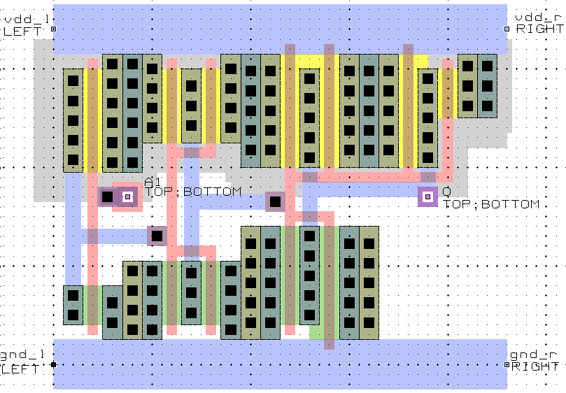 Schematic of the standard cell "invf104" with device sizes in lambda.
