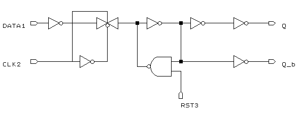 ------------------------------------------ CLK DATA RST Q Q_b ------------------------------------------ 0 x 1 Qn-1 Q_bn-1 1 0 1 0 1 1 1 1 1 0 x x 0 0 1 ------------------------------------------