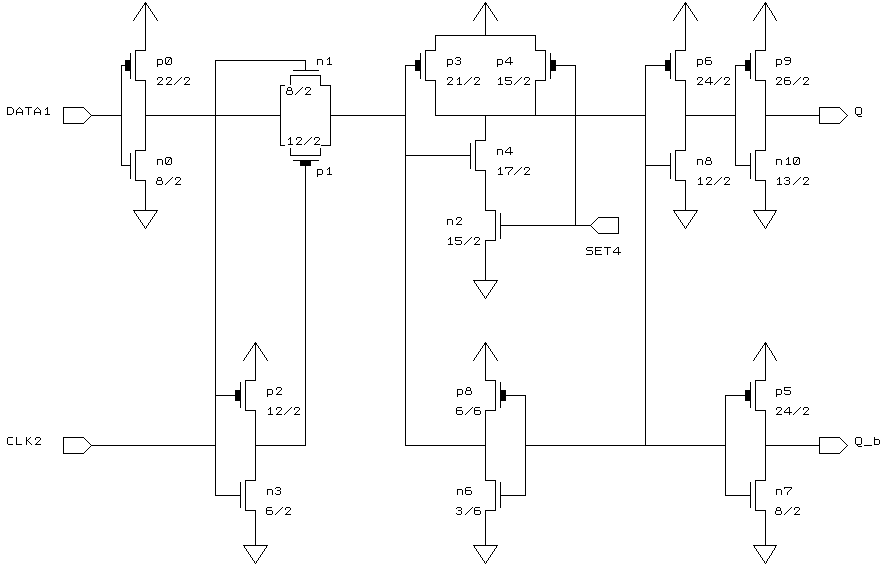 ------------------------------------------ CLK DATA SET Q Q_b ------------------------------------------ 0 x 1 Qn-1 Q_bn-1 1 0 1 0 1 1 1 1 1 0 x x 0 1 0 ------------------------------------------