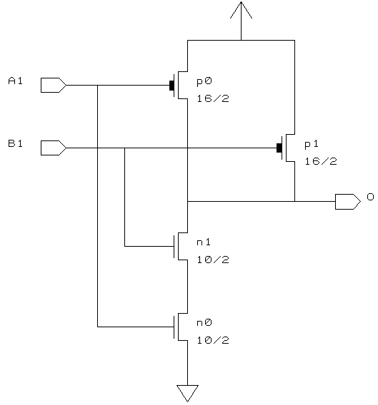-------------------------------------------- Name X_loc Y_loc Capacitance (fF) lambda lambda 2U 1.2U 0.8U -------------------------------------------- A1 10 23 66.5 31.1 20.4 B1 19 23 59.7 28.5 18.5 O 27 13 - - - --------------------------------------------