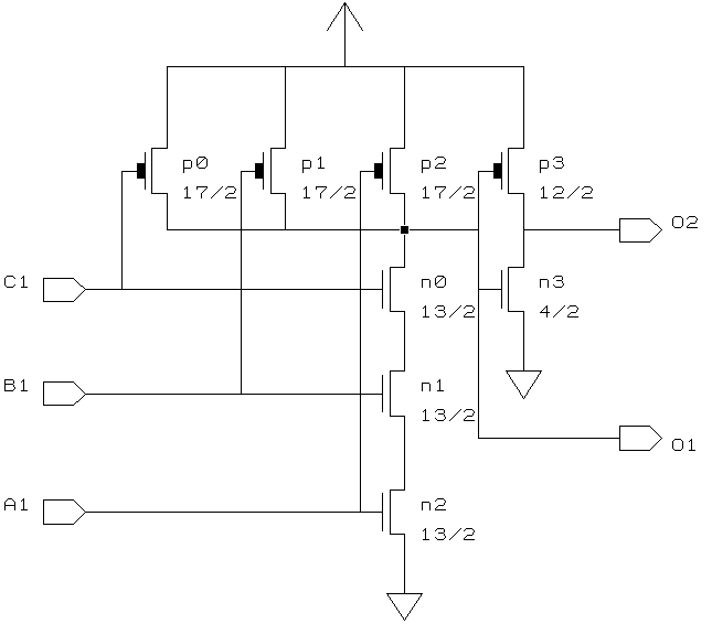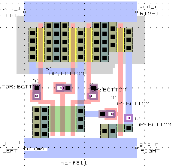 Schematic of the standard cell "nanf311" with device sizes in lambda.