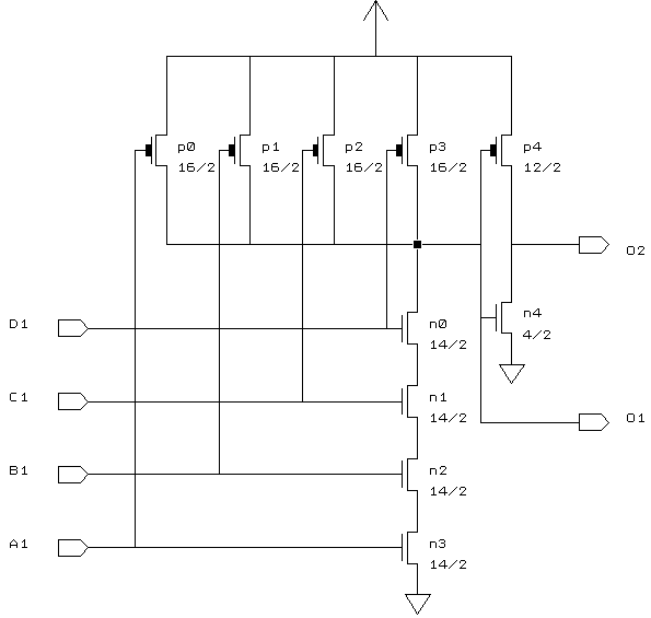 Schematic of the standard cell "nanf411" with device sizes in lambda.