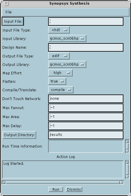 Much of the power of the Synopsys synthesis environment is NOT exposed via this GUI; the intended use of this GUI is for routine, quick synthesis experiments.