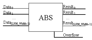 Function if Data = 2LPM_Width-1, then Overflow = 1, Result = UNDEFINED else if Data < 0, then Result = (0 - Data) else Result = Data Data must always represent a SIGNED number and may be positive or negative. Result will always be positive. |