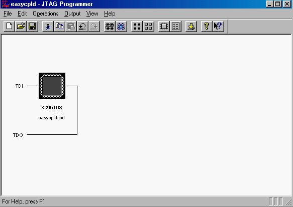 For a CPLD the .jed (bitstream) needs to be first tranlsated into a format that is compatible with the CPLD device before it can be downloaded. This is done as follows.
