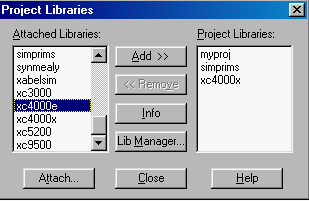 windows the Project Libraries, such as myproj, xc4000x and simprims. If