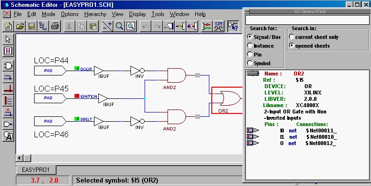 Figure 11: Use of the Query feature in the Schematic editor to find