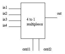 module multiplexor4_1 (out, in1, in2, in3 ,in4, cntrl1, cntrl2); output out; input in1, in2, in3, in4, cntrl1, cntrl2; reg out; // Note that this is now a register always @(in1 or in2 or in3 or in4 or cntrl1 or cntrl2) if (cntrl1==1) if (cntrl2==1) out = in4; else out = in3; else if (cntrl2==1) out = in2; else out = in1; endmodule