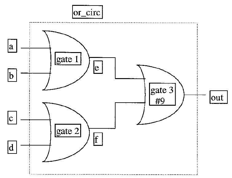 The program corresponding to Figure 2, is very similar to the one for distributed delay. The difference is that only or - gate 3 has got a delay assigned to it: