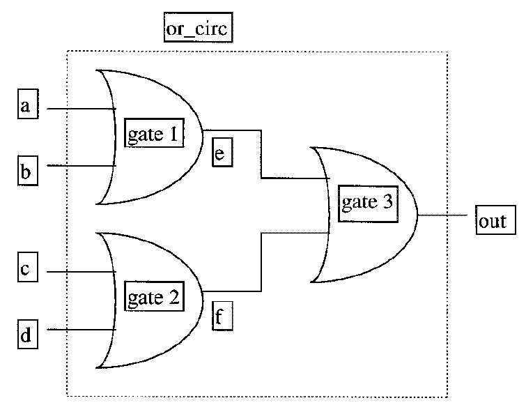 The total delay from each input to each output is given. The same example circuit as for the distributed and lumped delay model is used. This means that the sum delay from each input to each output is the same.