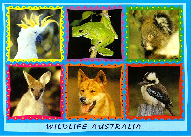 Pretty Faced Wallaby                                Dingo                                        Kookaburra
