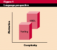 I suppose everybody knows that Verilog is patterned after "C" and VHDL is patterned after Ada. What that basically means is that Verilog is terse and doesn't take its type-checking seriously, whereas VHDL is verbose and strongly typed.