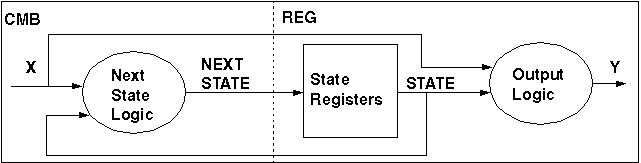 FSM is fed with asynchronous inputs (X); TWO state processes