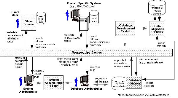 At the heart of the IIB is the Perspective Server, which provides the intelligent search and information brokering function in support of user requests. From these user requests, it generates queries to the associated source repositories. The Perspectives Server maps the user's query from either the common vocabulary or a customized, user-specific vocabulary to the physical back-end repository implementation notation (e.g., SQL, C++), returning the requested data to the user in a user-specified format.