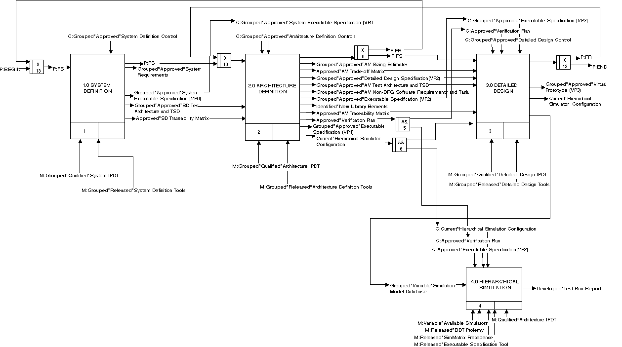 The following graph is the top level of the RASSP Design Process. To see more details, double-click on any of the boxes.
