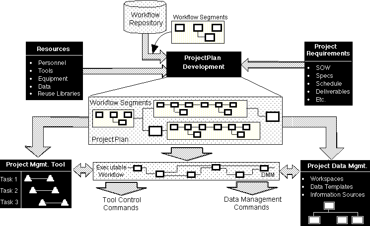 are also reusable. Thus, options available to a user organization are either to make use of the RASSP workflow templates in current form or to develop process plans based on a combination of reuse of RASSP workflow segments, individual process
