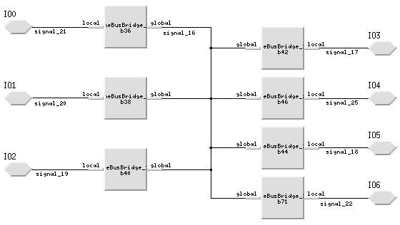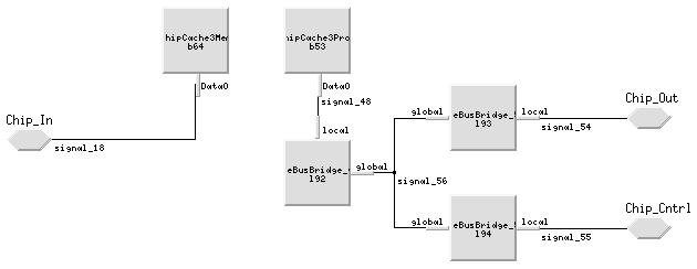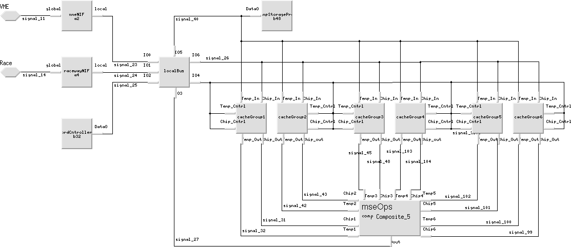 To accurately capture the behavior of each of the hardware elements, several techniques were developed. The PML library was limited in terms of the number and variety of hardware elements that it supported. For example, the PML library did not support a local "multi-drop" bus structure that is fairly common among board designs. However, standard PML hardware elements were used and adapted to accurately model the desired behavior. For instance, the VME bus bridge library element was used to model the behavior of the "multi-drop" bus. Figure 4 shows how the PML VME bus bridge library elements were adapted and combined to create the local "multi-drop" bus model.
