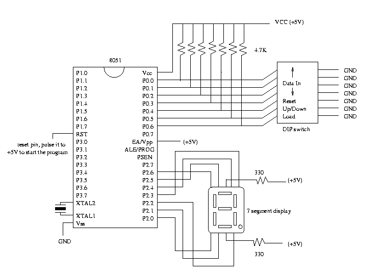 setting the pins on the 8051 to '1' or '0'. See the figure below