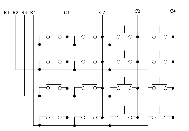Keypads are often used as a primary input device for embedded microcontrollers. The keypads actually consist of a number of switches, connected in a row/column arrangement as shown in Fig 2.
