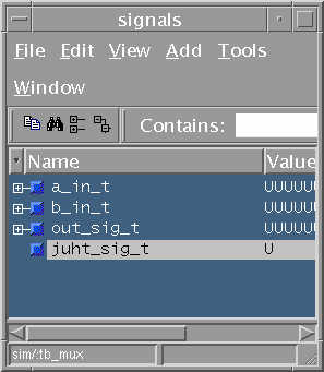 For debugging purposes, you can view signals within your design. The waveform window displays the signals’ current value as well as any history.