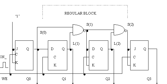 It is quite common that regular structures contain some irregularities. In such cases, the if scheme is very useful. Example 2 describes the synchronuous decimal counter that consists of JK flip-flops and NAND gates (Fig. 2). In that structure there are some irregularities related to the connection of the next level of flip-flops.