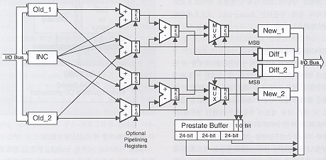 ÀÌ ¾Ë°í¸®ÁòÀº FPGA¿ëÀ¸·Î Àß ¸Â´Â´Ù. º´·Ä µ¥ÀÌÅÍ °æ·Î¸¦ ó¸®ÇÏ´Â FPGAÀÇ ´É·ÂÀº 1´Ü°è¿¡¼­ ADD / SUB ºí·Ï 4°³ÀÇ º´·Ä ±¸Á¶¸¦, ¶Ç 2´Ü°è¿¡¼­ SUB ºí·Ï 2°³ÀÇ º´·Ä ±¸Á¶¸¦ ó¸®ÇÑ´Ù. 2°³ÀÇ MUX ºí·ÏÀº ¾Æ¹«·± Ãß°¡ Ŭ·° »çÀÌŬ ¾øÀÌ ÇÊ¿äÇÒ ¶§±îÁö ÀÎDz µ¥ÀÌÅ͸¦ ·¹Áö½ºÅÍÇϰųª Áö¿¬ÇÏ´Â ´É·ÂÀ» °¡Áö°í ÀÖ´Ù.