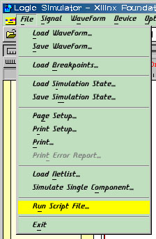 XilinxÀÇ Simulator´Â ¿¹ÀüºÎÅÍ ½á¿À´ø Script¹æ½ÄÀÇ SimulationÀ» Áö¿øÇϱâÀ§ÇØ "File -> Run Script File..."À̶õ ¸í·ÉÀ» ¸¶·ÃÇØ³õ°í ÀÖ°í, ¶ÇÇÑ ÀÌ·¯ÇÑ ScriptÀÇ ÀÛ¼ºÀ» µ½±âÀ§ÇØ "Tools -> Script Editor..."¶õ ¸í·ÉÀ» Á¦°øÇÕ´Ï´Ù...