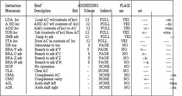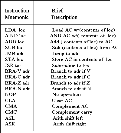 - NOP, CLA, CMA, CMC, ASL, ASR