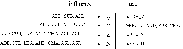 - Chock bits 3, 2, 1 and 0 against v, c, z, n flags
