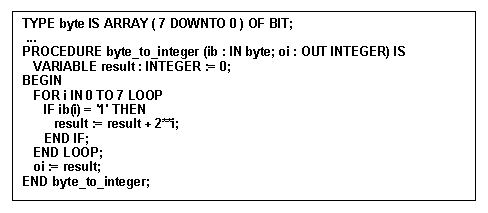 Type conversion procedure : converting bytes to integers.