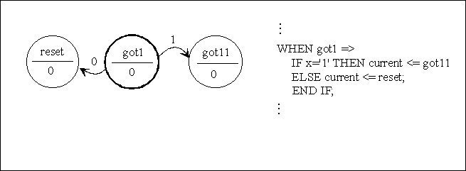 State transition and corresponding VHDL code.