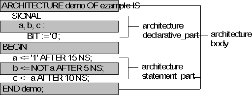 Syntax details of the architecture body of the demo architecture of example entity.