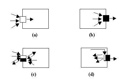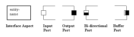 Using ports (a) Inputs, (b) Outputs, (c) Bi-directional ports, (d) Buffers.