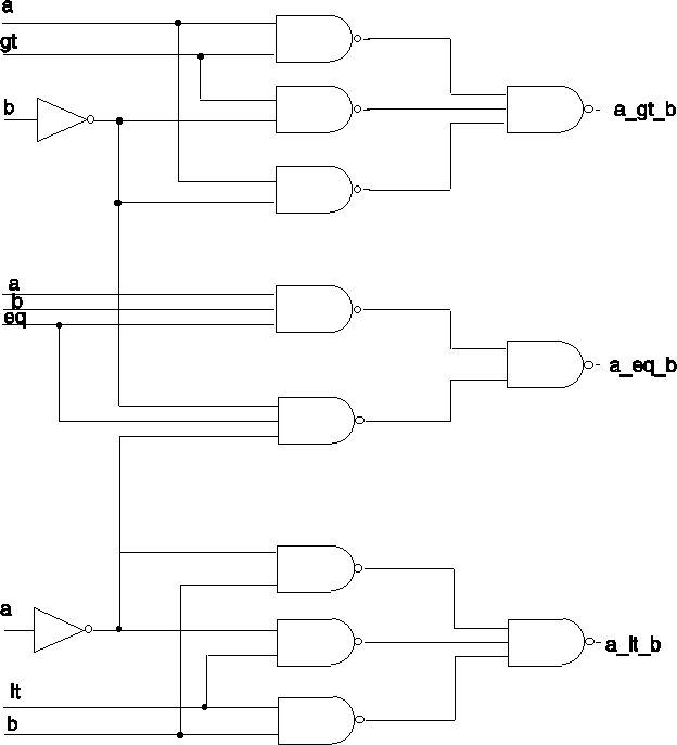gt, eq, lt : IN BIT; a_gt_b, a_eq_b, a_lt_b : OUT BIT);