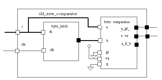 PORT MAP(con1, i, gnd, vdd, gnd, gt_compare, eq_compare, OPEN);