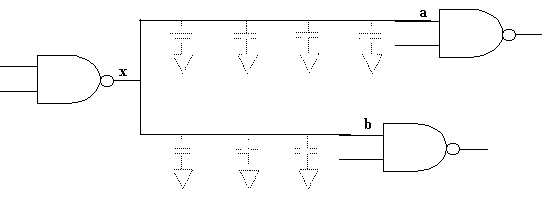Gates of Figure 4.5 reacting to changes originated by a changing from ‘1’ to ‘0’.