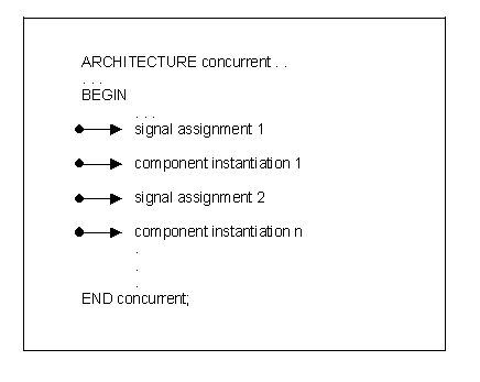 VHDL description for the gate level circuit in Figure 4.5 for the demonstration of timing and concurrency.