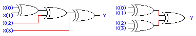 a. Y := X(0); FOR i in 1 to 3 LOOP IF X(i) = '1' THEN Y <= not Y; END LOOP;